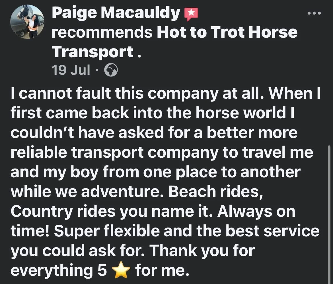 We ensure all your horses need are met while travelling.. when you travel with us you can relax knowing that we have full transparency.